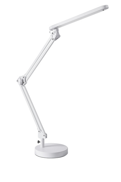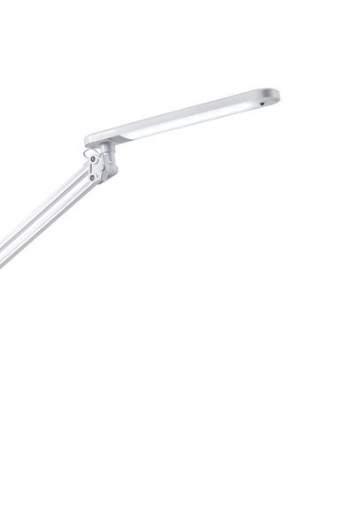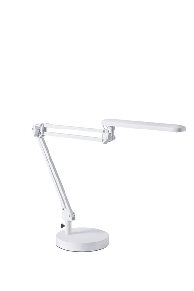Led bureaulamp met functionele dubbele arm voor individuele aanpassing op de werkplek. De reflector is horizontaal en verticaal verstelbaar. 230V/ 20LEDs / 7W. Lichtstroom: 420 lumen. Lichtsterkte: op 40cm 1250 lux. Levensduur van de LED's ca. 30.000 uur. Kleurtemperatuur: 5000k. Afmeting lamp: 44x28x28,5cm. Kleur lamp: Wit.