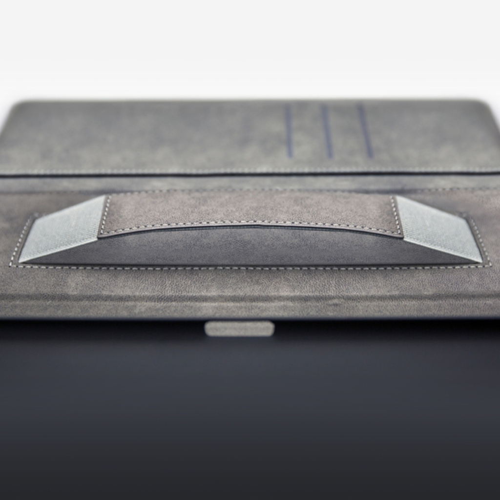 - Tevens heeft hij aan de linker binnenkant een band waar je hand doorheen kunt steken zodat je jouw tablet goed vast kan houden