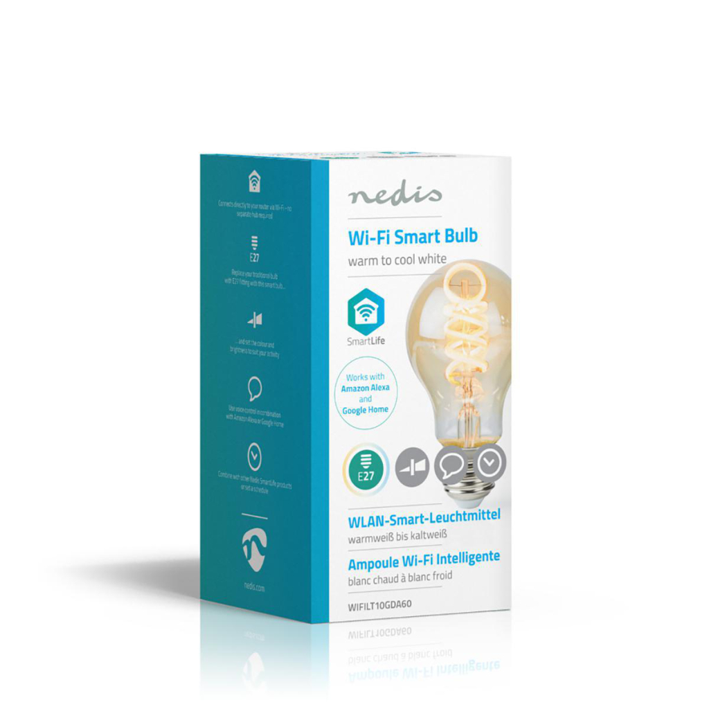 Sluit de lamp aan en je kunt de helderheid bedienen via de Nedis® SmartLife-app op je smartphone of tablet, of met een eenvoudige spraakopdracht via Siri, Amazon Alexa of Google Home.