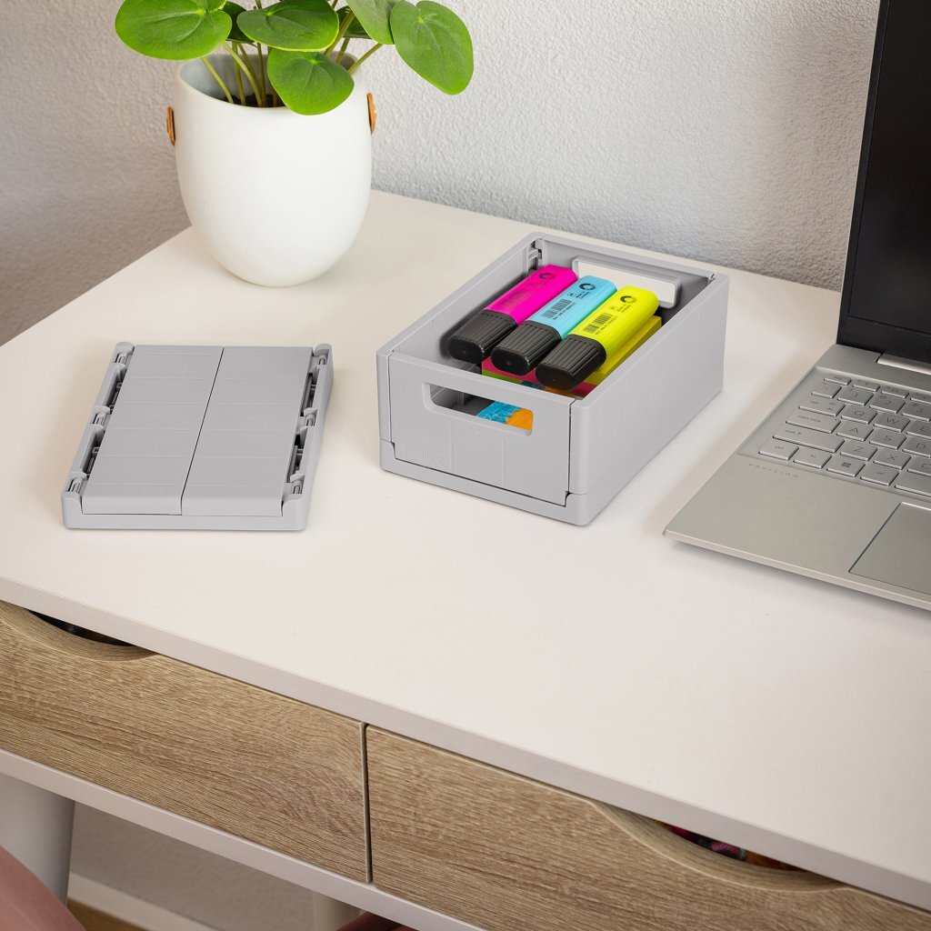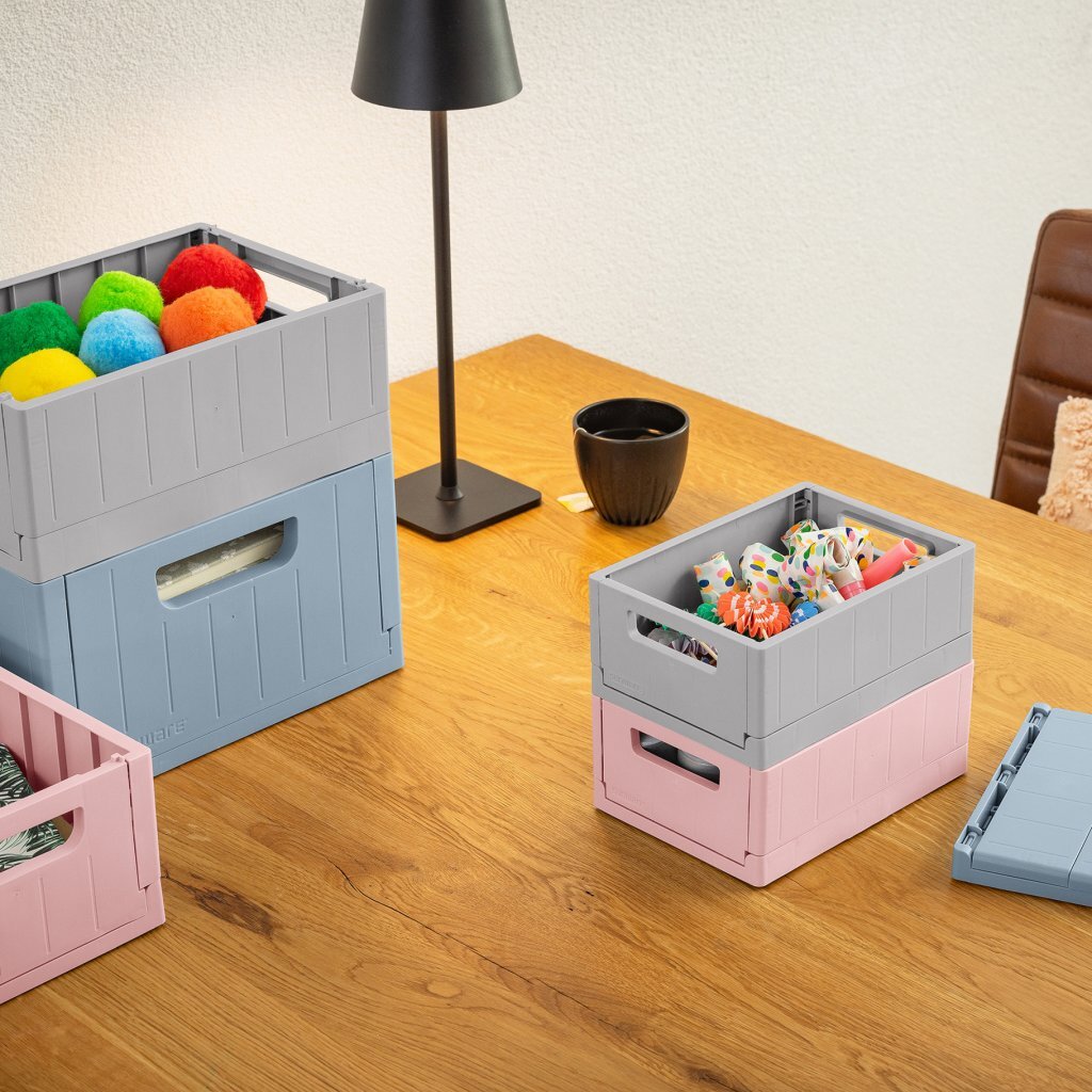 Deze multifunctionele opbergkratjes zijn echte eyecatchers en zijn overal in huis te gebruiken: van de woon- en slaapkamer tot aan de keuken en badkamer. De kratjes zijn daarnaast perfect stapelbaar, ook metverschillendematen onderling. Met de neutrale kleuren roze, grijs en blauw kun je alle kanten uit. Verder zijn zeeen fijne maat om kleine spullen op te bergenzoals sleutels en kruidenen ze zijngemaakt van gerecycled materiaal.