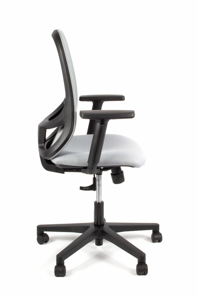 Bureaustoel Grace 01 zorgt voor een comfortabele zithouding door de brede rugleuning met verstelbare lendesteun. De armleuningen zijn 1D verstelbaar (hoog/laag) en door het synchroon mechanisme is de stoel kantelbaar en met een draaiknop is de weerstand te regelen. Ook de rugleuning is verstelbaar waardoor deze bureaustoel geschikt is voor maximaal 8 uur zitcomfort. De stoel is vervaardigd van metaal en heeft een kunststof afwerking. Het onderstel is gemaakt van kunststof en voorzien van 5 wielen die geschikt zijn voor zachte vloeren. Het polyester zitvlak (48 x 41 cm) is een synthetische vezel die licht, duurzaam, vormvast, kreukvrij en isolerend is en heeft een slijtvastheid van 85.000 zitcycli. De rugleuning is voorzien van netbespanning. Door de hendel onder de zitting is de luchtveer in hoogte individueel in te stellen van 43 tot 56 centimeter. De bureaustoel heeft een maximaal draagvermogen van 110 kg en weegt 12,5 kg. Kleur stof grijs/grijs. De bureaustoel is voorzien van Arbo norm EN1335. Made in Italy.