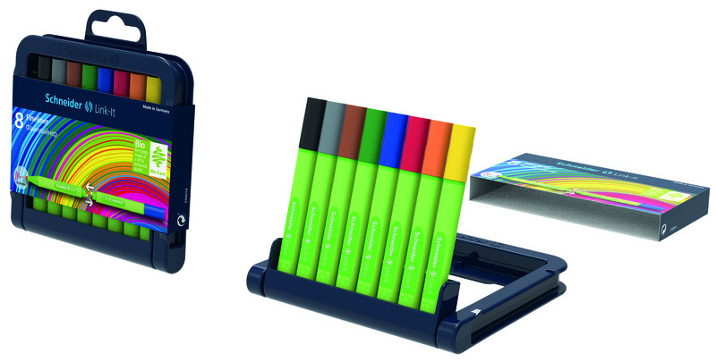 De eerste pen met een slim systeem om verschillende combinaties mogelijk te maken. Niet alleen verschillende kleuren, maar ook verschillende Link-It systemen zoals fineliners en viltstiften kunnen eenvoudig gekoppeld worden. De met rubber beklede driekantige greep is ideaal om ontspannen te schrijven en is gemaakt van 88 procent bio plastic. Schrijfkleur assorti 8 stuks.