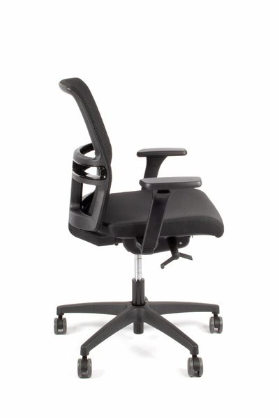 De ergonomische bureaustoel Omnia 02 zorgt voor een comfortabele zithouding door de brede rugleuning met verstelbare lendesteun. De armleuningen zijn 3D verstelbaar (hoog/laag/voor/achter) en door het synchroon mechanisme is de stoel kantelbaar en met een draaihendel is de weerstand te regelen. Ook de rugleuning is verstelbaar waardoor deze bureaustoel geschikt is voor maximaal 8 uur zitcomfort. De stoel is vervaardigd van metaal en heeft een kunststof afwerking. Het onderstel is gemaakt van kunststof en voorzien van 5 wielen die geschikt zijn voor zachte vloeren. Het polyester zitvlak (49 x 44 cm) is een synthetische vezel die licht, duurzaam, vormvast, kreukvrij en isolerend is en heeft een slijtvastheid van 85.000 zitcycli. De rugleuning is voorzien van netbespanning. Door de hendel onder de zitting is de luchtveer in hoogte individueel in te stellen van 44 tot 56 centimeter. De bureaustoel heeft een maximaal draagvermogen van 110 kg en weegt 16,4 kg. Kleur stof zwart/zwart. De bureaustoel wordt geleverd met 5 jaar garantie en is voorzien van Arbo norm EN1335. Made in Italy.
