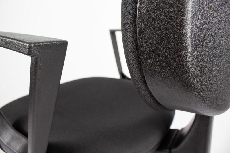 Bureaustoel Tiger 01/CP met permanente armleuningen. In hoogte verstelbare rugleuning en met een draaiknop is de weerstand te regelen. Hierdoor is deze bureaustoel geschikt is voor maximaal 8 uur zitcomfort. De stoel is vervaardigd van metaal en heeft een kunststof afwerking. Het onderstel is gemaakt van kunststof en voorzien van 5 wielen die geschikt zijn voor zachte vloeren. De polyester zitvlak en rugleuning (46 x 39 cm) is een synthetische vezel die licht, duurzaam, vormvast, kreukvrij en isolerend is en heeft een slijtvastheid van 85.000 zitcycli. Door de hendel onder de zitting is de luchtveer in hoogte individueel in te stellen van 44 tot 57 centimeter. De bureaustoel heeft een maximaal draagvermogen van 100 kg en weegt 10,7 kg. Kleur stof zwart/zwart. De bureaustoel wordt geleverd met 2 jaar garantie en is voorzien van Arbo norm EN1335. Made in Italy.